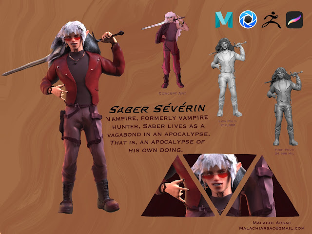 Added more vampire motifs Fixed hand and sword position and repositioned belts Fixed leather jacket texture Added metal textures to buckles...